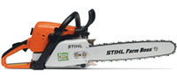 One of the top 2 chain saw sellers in the US is Stihl. While they make several types of 2 cycle tools, they are most known for their chain saws. They can be found on farms and with professional tree services. There are basically 3 grades of Stihl chain saws: Occasional (Homeowner) use, Mid-Range Use saws and Professional Use. The Occasional use saw is still better than most manufacturer's top models. Pro models are the most expensive when comparing similar sizes. Pro saws have several benefits like an isolated handle that cuts down on operator fatigue. If you run a saw all day, the Pro models are for you! Pro models are also available in larger bar and engine sizes for big jobs. The biggest Stihl can take a 59 inch cutting bar! Stihl mid-range chain saws are dependable and tough customers for regular use. Many landscapers buy the Mid-Range saws for those reasons alone. The MS290 Farm Boss is one of the best selling chain saws to date.